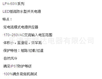 聯達開關電源;專業生產銷售 開關電源、防水電源、防雨電源、LED屏幕顯示電源、安防監控電源,過CE認證,質保二年!
