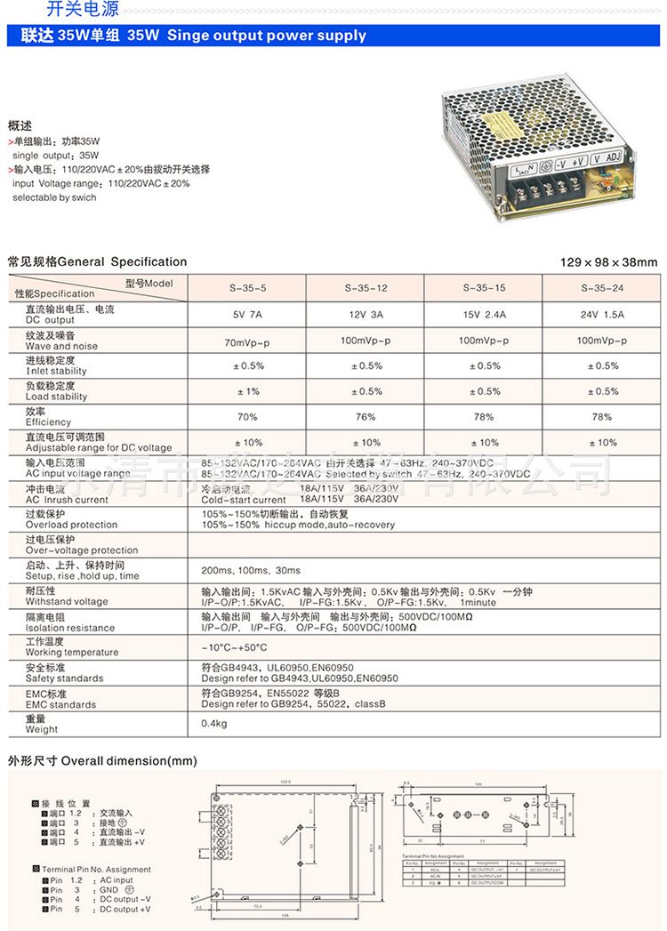大量批發 開關電源 直流電源 穩壓電源S-35W-12v3a 規格齊全