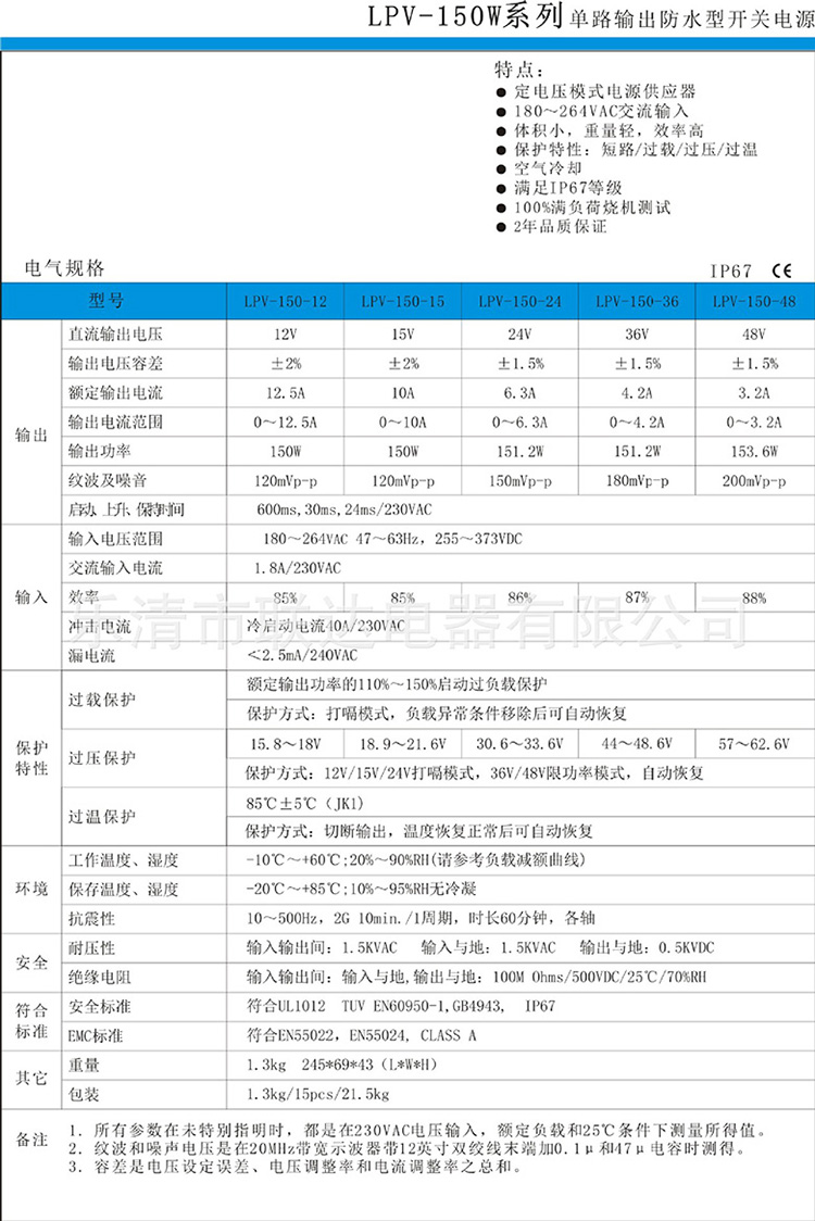 直銷 LPV-150W-12V12.5A防水 電源 LED開關(guān) 電源 工控 電源