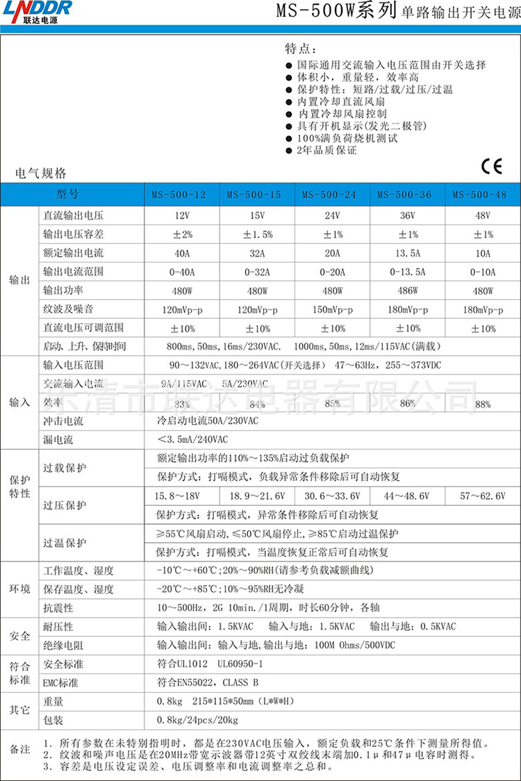 組數(shù) | 型號(hào)規(guī)格 | AC輸入 | DC輸出 | 輸出保護(hù)功能 | 產(chǎn)品尺寸 | 重量 | 裝箱數(shù) | 出廠價(jià) | |||||