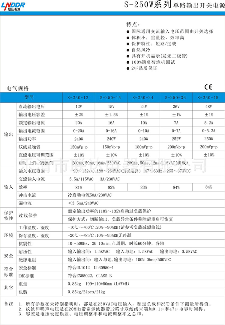 【聯(lián)達電器】S-250W-24V10A 開關(guān)電源 直流電源 工業(yè)安防電源