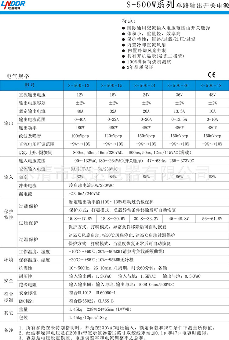 長期供應(yīng) 單組輸出開關(guān) 電源 S-500W-12V 40A開關(guān) 電源 保質(zhì)保量