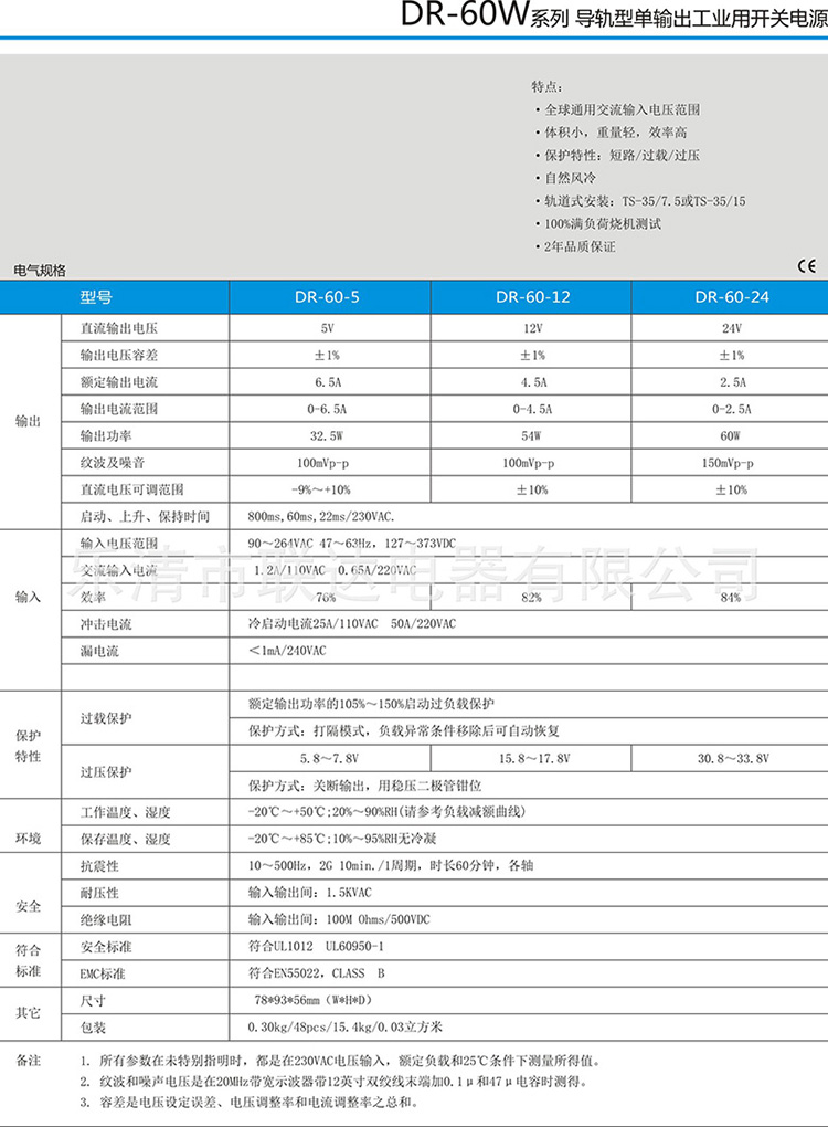 供應 DR-60W-12V直流 電源 LED 防雨 電源 導軌安裝式開關 電源