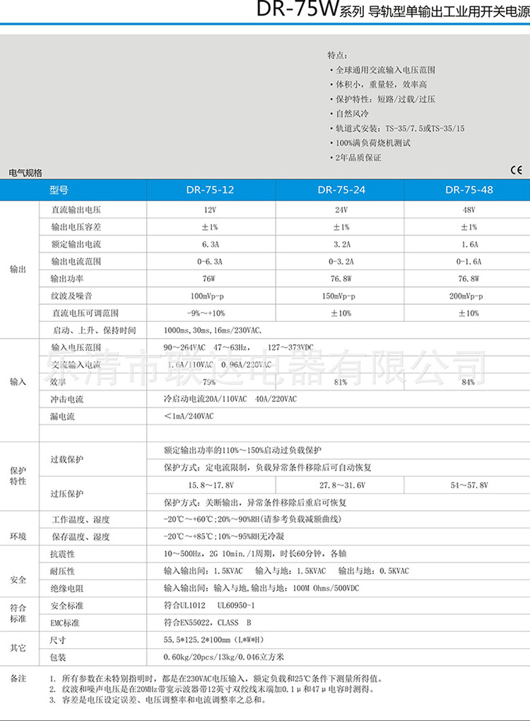 原廠直銷 開關(guān)電源 穩(wěn)壓電源 DR-75W-24V 導(dǎo)軌電源 量大從優(yōu)
