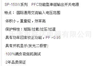 火爆促銷SP-150W-15V帶PFC功能型單組輸出開關電源 工控工業電源