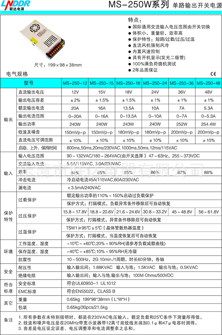 新款250W小體積 帶風機 MS-250W-27V9A 開關電源
